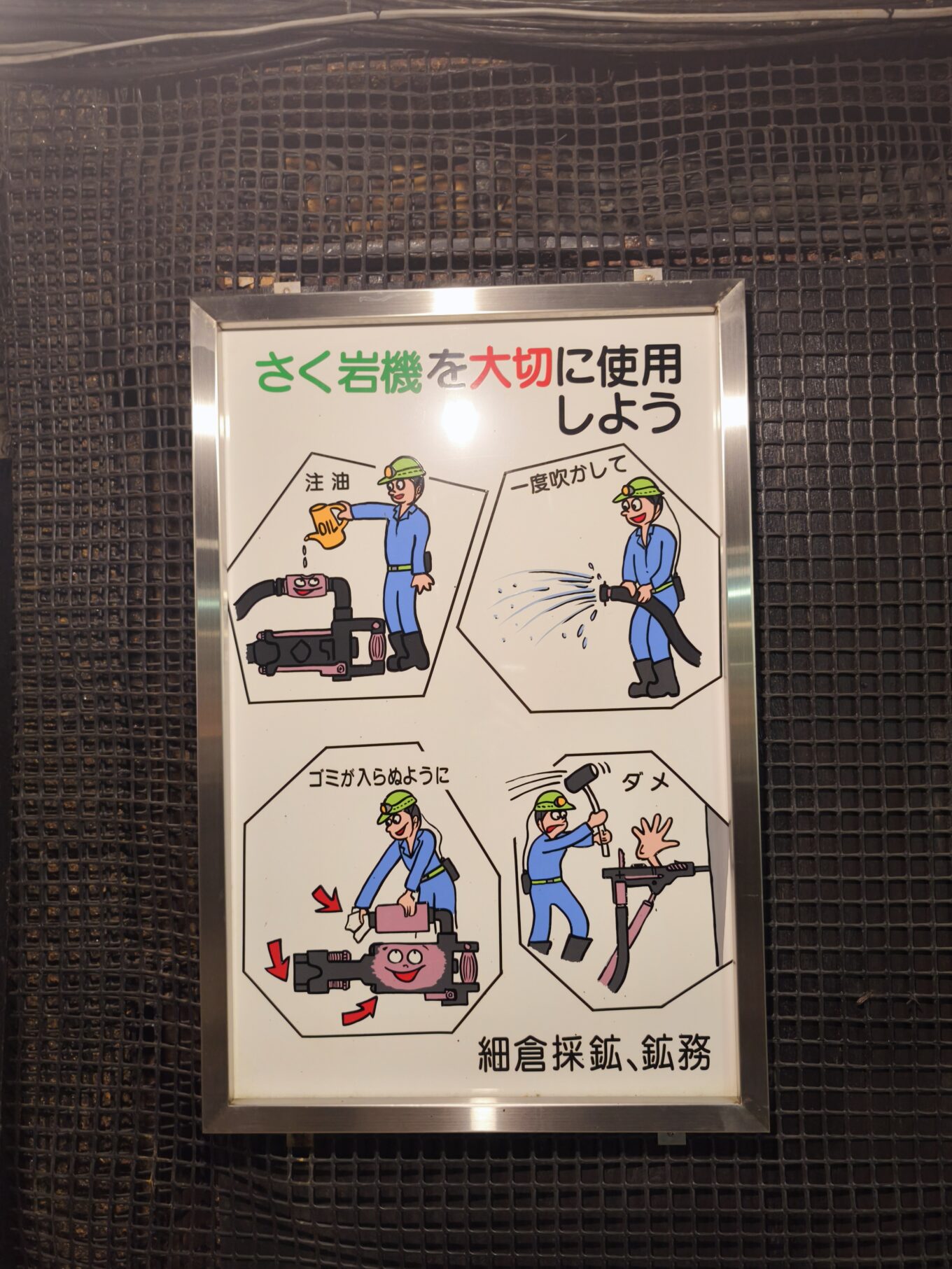 細倉鉱山の坑道の総延長は約600km。そのうちの777mが観光用に整備されています。坑内の所要時間は40分くらいでコンパクトに回れるのもよかったです。