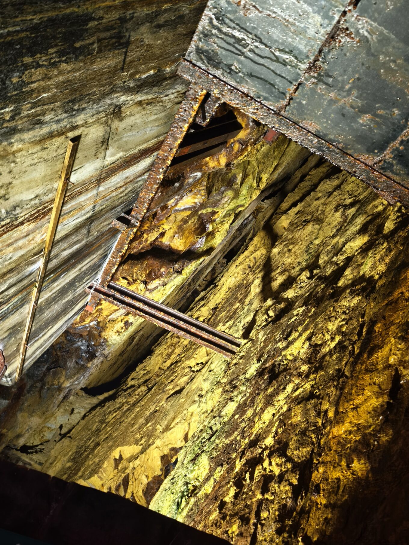 突然現れた広い空間は、鉱脈に沿って上へ上へと掘ったためできた空間でした。